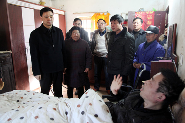 在居民新區(qū)退休職工賈則元家,姜建友來(lái)到賈則元的床前,將集團(tuán)公司黨委的溫暖送到了他的心坎里,賈則元因病臥床不能說(shuō)話,當(dāng)看到集團(tuán)公司和農(nóng)場(chǎng)領(lǐng)導(dǎo)來(lái)到家中看望他時(shí),激動(dòng)的熱淚盈眶,在旁的家人再三感謝集團(tuán)公司領(lǐng)導(dǎo)對(duì)他們的關(guān)心。姜建友在了解了賈則元的病情后,叮囑他的家人一定要照顧好老人的生活起居,當(dāng)?shù)弥先说貌∫荒甓嗯P床不起都是子女在照顧時(shí),姜建友欣慰的說(shuō),有這樣的子女也是老人的福氣,希望他們繼續(xù)照顧好老人,讓老人老有所依,病有所托。在困難職工李兵家,姜建友來(lái)到床前,握著李兵的手詢問(wèn)了他目前的病情和治療情況,當(dāng)?shù)弥翘悄虿【C合并發(fā)癥時(shí),叮囑他要積極做好治療,特別是要去大醫(yī)院做檢查,控制好血糖,要樹(shù)立戰(zhàn)勝疾病的信心。所到之處,感謝聲不絕于耳,在這寒冷的冬日,困難職工的家中被一股股暖流包圍。(錢厚紅)