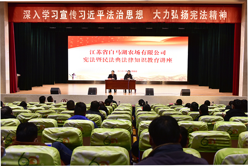 12月4日上午,在我國第七個國家憲法日和第三個“憲法宣傳周”之際,白馬湖農場公司圍繞“深入學習貫徹習近平法治思想 大力弘揚憲法精神”這一主題,通過舉辦憲法暨民法典法律知識教育講座,同時啟動開展“法治宣傳月”和“憲法宣傳周”活動,深刻宣傳領會黨的十九屆五中全會精神,深化了解把握全面依法治國的重大意義。