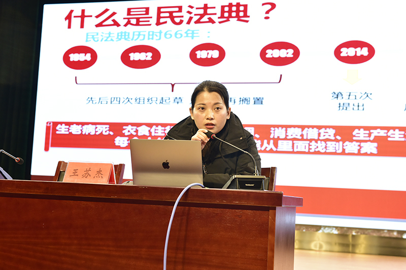 在接下來進行的憲法暨民法典法律知識教育講座中,江蘇山陽律師事務所主任孔慶衛圍繞學習《憲法》修正案這一主題,分別從什么是憲法、為什么要修改憲法、憲法修改建議的主要內容三個方面為大家進行了憲法知識解讀;江蘇山陽律師事務所律師王蘇杰作了《中華人民共和國民法典》普法講座,側重從《民法典》九個方面的亮點為大家解讀闡述了這部社會生活百科全書。通過認真聽取他們的講座,有效地提高了大家的法治思維和法治意識,進一步增強了大家學法、尊法、守法、用法的自覺性和能動性,也有力地提升了大家的法律知識水平和依法履職能力。