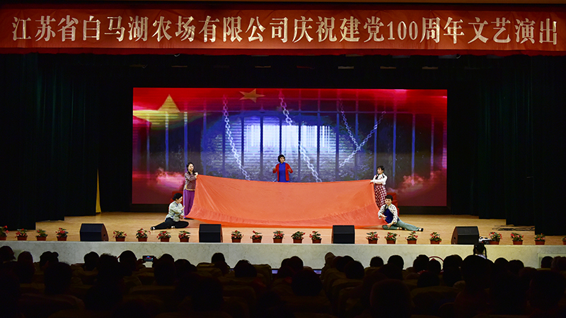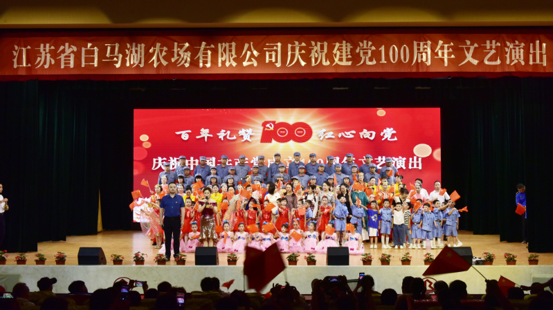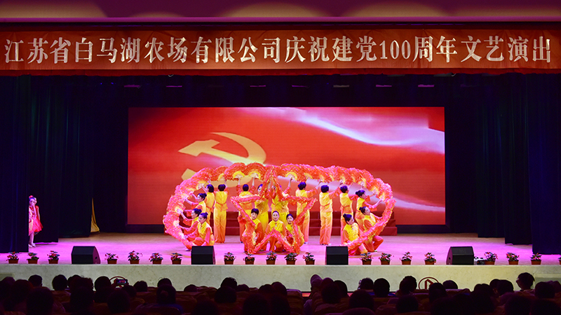 為慶祝中國共產(chǎn)黨成立100周年,回顧中國共產(chǎn)黨團(tuán)結(jié)帶領(lǐng)全國各族人民戰(zhàn)勝各種艱難險(xiǎn)阻、譜寫中華民族自強(qiáng)不息的光輝歷程,感悟中國共產(chǎn)黨歷經(jīng)百年始終不渝的初心使命,共同抒發(fā)在黨的堅(jiān)強(qiáng)領(lǐng)導(dǎo)下奮進(jìn)新時(shí)代的壯志豪情,讓廣大干部職工在紅色氛圍中學(xué)習(xí)黨史、展示風(fēng)采,推進(jìn)黨史學(xué)習(xí)教育和“四史”宣傳教育不斷走深走實(shí),6月29日下午,白馬湖農(nóng)場公司在職工會(huì)堂成功舉辦了“百年禮贊、紅心向黨 ”慶祝中國共產(chǎn)黨成立100周年文藝演出。