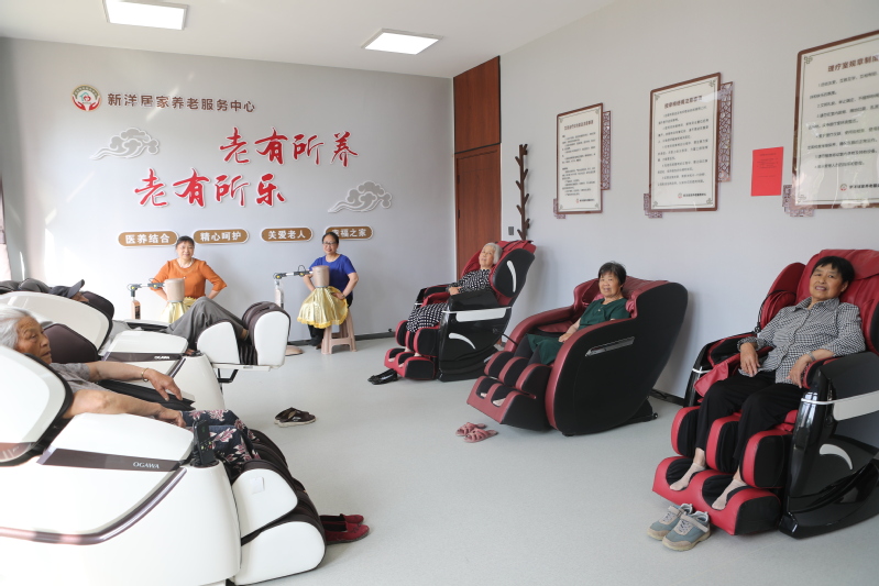新洋積極應(yīng)對養(yǎng)老服務(wù)新需求,投入600多萬元新建1128平方米的一體式綜合服務(wù)大廳,內(nèi)設(shè)康復(fù)訓練室、理療室、兒童樂園、棋牌室、書畫閱覽室、綜合活動廳、助浴室以及餐廳等,在軟硬件投入、人員配備、管理服務(wù)、養(yǎng)老環(huán)境等多維度提質(zhì)增效,收獲了轄區(qū)老人的高度好評。