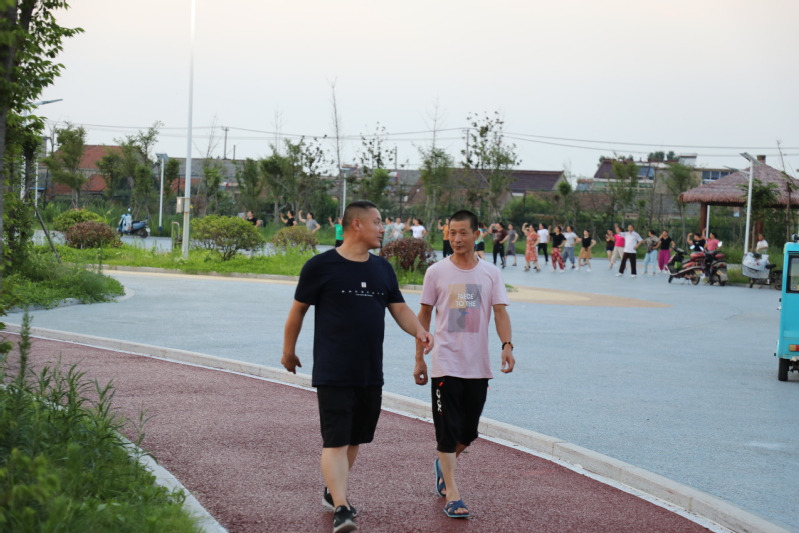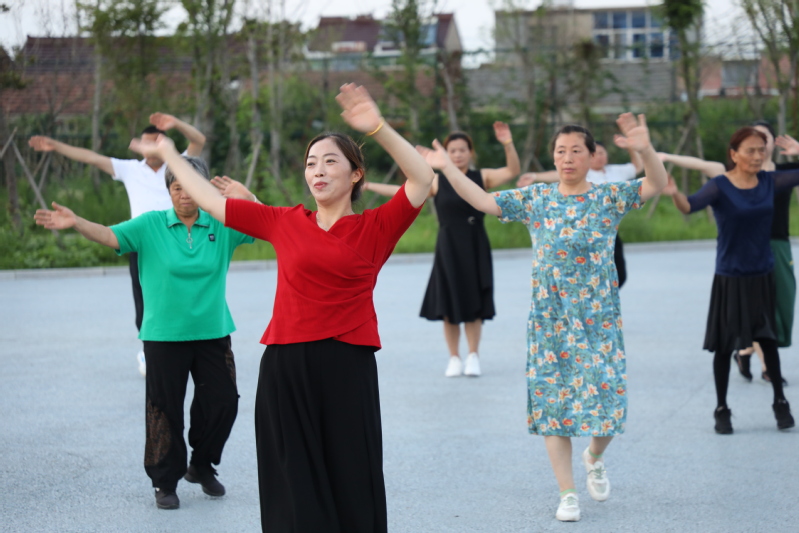 廣場舞臺上的愜意。每天傍晚6:30分,文化廣場都會傳出一陣陣歡快的音樂聲,伴隨著音樂的節(jié)奏,近百人舞動的身姿吸引著不少人跟著跳動比劃。自文化廣場建成后,農(nóng)場公司特地在百姓大舞臺廣場安裝了接電裝置,為職工居民跳廣場舞提供方便,舞臺南側(cè)的高桿燈光明亮,舞者們的臉上洋溢著幸福的微笑。廣場建成后,退休職工黃淑英主動當(dāng)起了廣場舞的老師,每天領(lǐng)著大家一起跳操跳舞健身,一支百余人的廣場舞隊每天活躍在文化廣場,帶動了更多的職工居民加入到跳舞健身的行列。黃淑英說:每晚跳舞健身后的大汗淋漓舒服極了,不僅使全身都得到了活動和放松,增強(qiáng)了體質(zhì),還增進(jìn)了大家之間的感情。