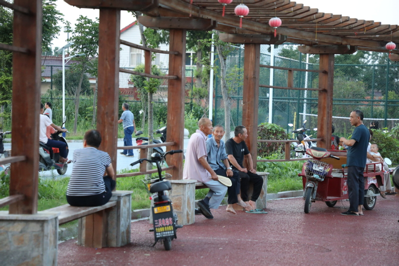 廊架下的“家常理短”。棗紅的廊架,既有著中國傳統(tǒng)因素,又有著古典的雅致,廊架下的長板凳不僅成為鍛煉后人們休息的好地方,也成為大家聊在的好去處。伴著微涼的晚風(fēng),三五個人坐在廊架下,嘮嘮嗑,拉拉家常,說著今年的水稻長的怎么樣?你家這次撒了多少肥?我家雇了多少人在田里拔草等等,一天忙碌后的疲勞在這里得到緩解。居民新區(qū)的明大媽每天都會到廊架下坐上一個多小時,退休在家的她,每天在廊架下聽著大家?guī)淼?/span>“新聞”,不僅充實(shí)了晚年生活,也打發(fā)了退休后的充足時間,廊架下的“家常理短”已逐漸成為三河人日常生活的一種樂趣。