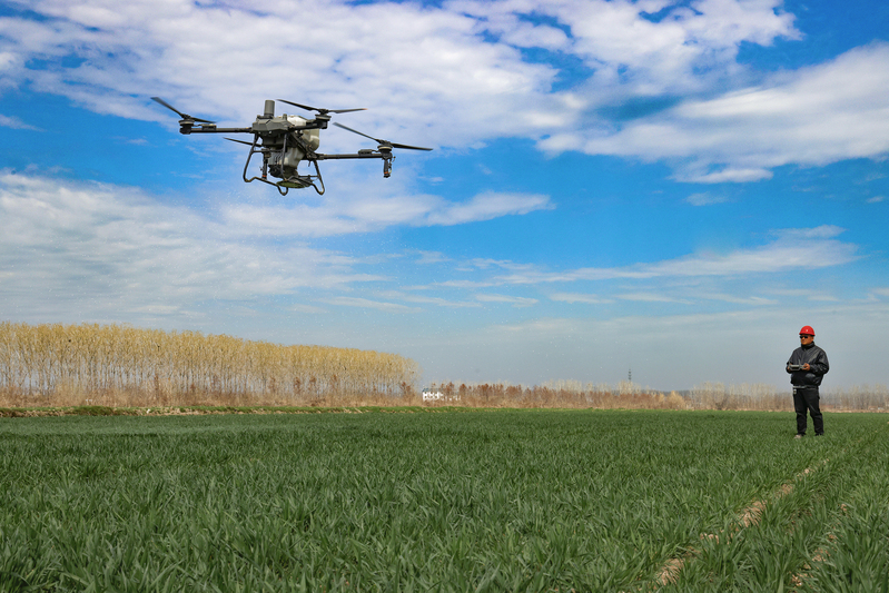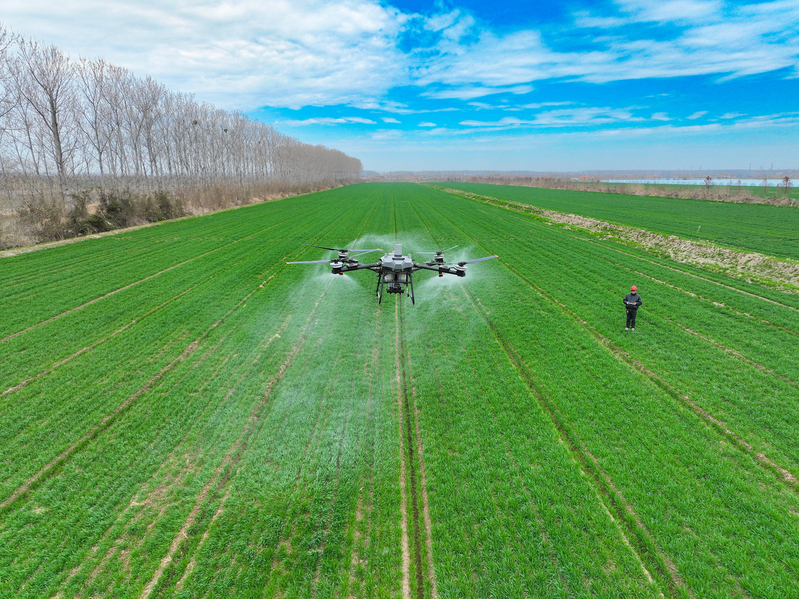 3月13日,江蘇省鹽城市射陽(yáng)縣,在江蘇農(nóng)墾新洋農(nóng)場(chǎng)的一處高標(biāo)準(zhǔn)農(nóng)田里,農(nóng)技人員正在操縱一臺(tái)新式植保無(wú)人機(jī),為小麥開展春季施肥作業(yè)。當(dāng)前,新洋農(nóng)場(chǎng)6萬(wàn)畝高標(biāo)準(zhǔn)農(nóng)業(yè)生產(chǎn)基地進(jìn)入春管關(guān)鍵階段,該農(nóng)場(chǎng)搶抓農(nóng)時(shí),積極開展春季田管作業(yè),助力夏糧穩(wěn)產(chǎn)增收。