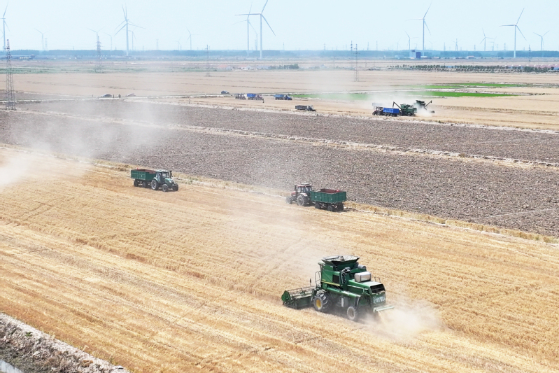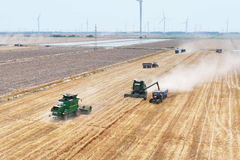 2025年5月29日,鹽城射陽縣江蘇農(nóng)墾臨海農(nóng)場(chǎng)順泰生產(chǎn)區(qū)麥浪涌動(dòng),大型聯(lián)合收割機(jī)轟鳴作業(yè),率先拉開當(dāng)?shù)叵氖招←溞蚰弧=陙恚r(nóng)場(chǎng)黨委以墾地合作推動(dòng)發(fā)展,通過技術(shù)賦能與鹽堿地改良,昔日鹽堿地蛻變?yōu)椤皣嵓Z田”,為鄉(xiāng)村振興打造國(guó)有農(nóng)業(yè)新樣板。