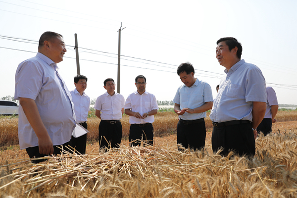 6月14日,集團(tuán)公司總經(jīng)理、蘇墾農(nóng)發(fā)股份公司董事長胡兆輝到黃海檢查指導(dǎo)工作。集團(tuán)農(nóng)業(yè)發(fā)展部部長朱亞東、蘇墾農(nóng)發(fā)股份公司大華種業(yè)總經(jīng)理江玉明、黃海農(nóng)場有限公司黨委書記王亦勤、總經(jīng)理單祥忠等陪同。