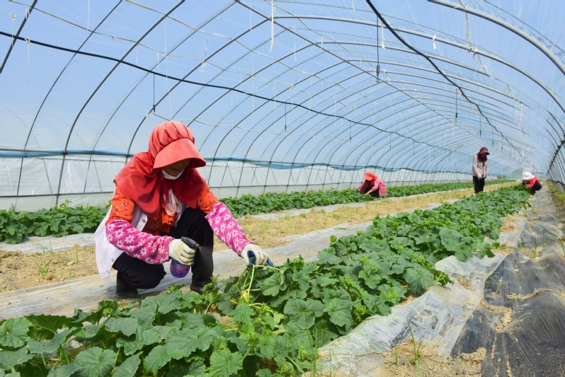 走進淮海農(nóng)場高效種植園,大棚內一株株青翠欲滴的甜瓜苗郁郁蔥蔥,一朵朵黃燦燦的小花競相綻放、長勢喜人。目前正值授粉關鍵期,工人們在棚內來回穿梭,精心授粉,為今年的豐收打好基礎。據(jù)了解,農(nóng)場采用“羊肚菌+甜瓜”的輪作模式,利用種植菌菇改良后的土壤栽種甜瓜,達到提升甜瓜品質,一棚兩收、激活土地效益的目的。